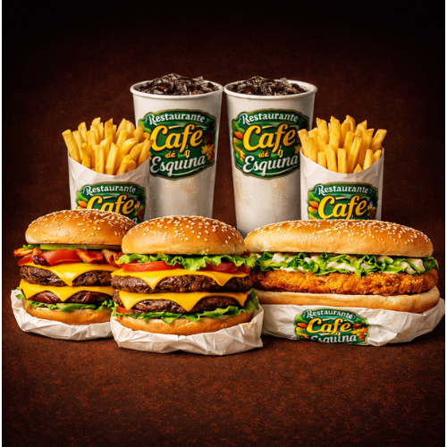 Disfruta de un combo completo diseñado para satisfacer a toda la familia: hamburguesas de res a la parrilla, jugosas y perfectamente sazonadas; sándwiches de pollo crujiente, dorados por fuera y tiernos por dentro; acompañados de papas doradas y crujientes y bebidas refrescantes.